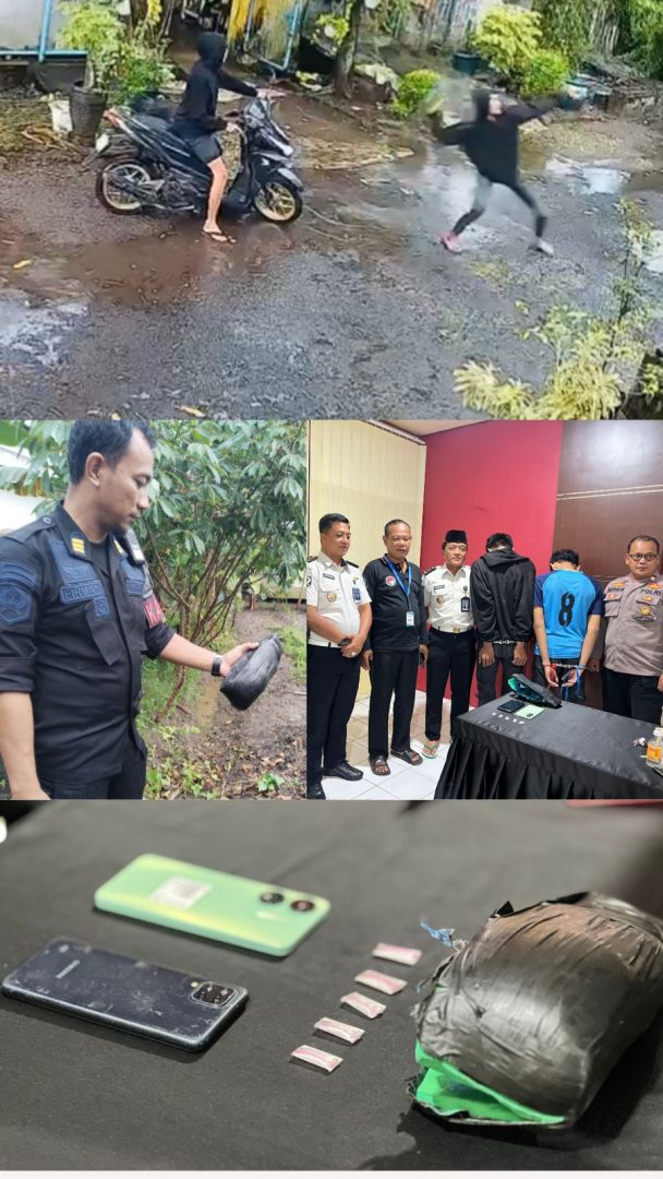 Tim gabungan akhirnya mengamankan dua pelaku berinisial MNH dan P di rumah masing-masing. Selain itu, ditemukan barang bukti tambahan berupa alat isap sabu serta sisa kristal putih yang diduga narkotika.