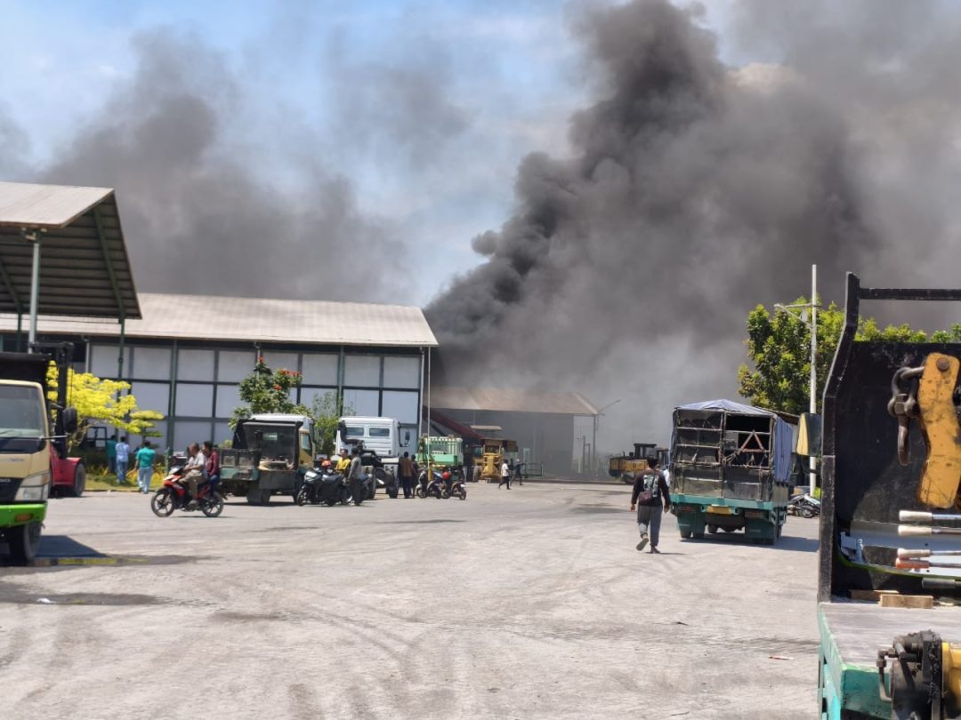 Kobaran api dengan cepat menjalar ke seluruh bagian gudang yang dipenuhi bahan mudah terbakar. Bahkan beberapa truk yang terparkir di dalam sempat nyaris ikut terbakar sebelum berhasil dikeluarkan para pegawai.