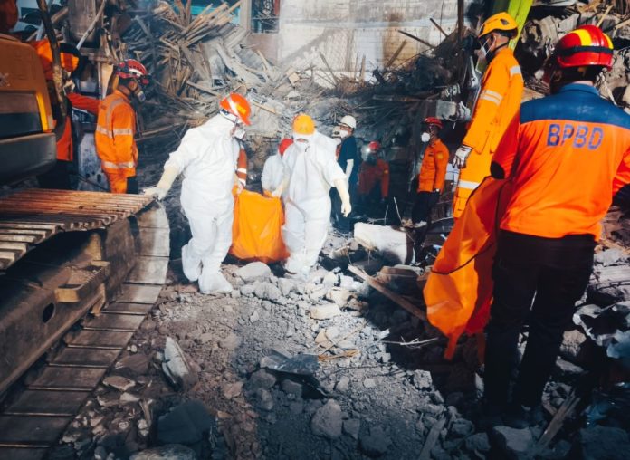 Evakuasi pada hari Minggu dini hari dilakukan di bawah kondisi medan yang berat dan tumpukan puing bangunan yang masih berpotensi runtuh. Tim berfokus membersihkan material di sisi utara bangunan yang tidak lagi terhubung dengan struktur utama.