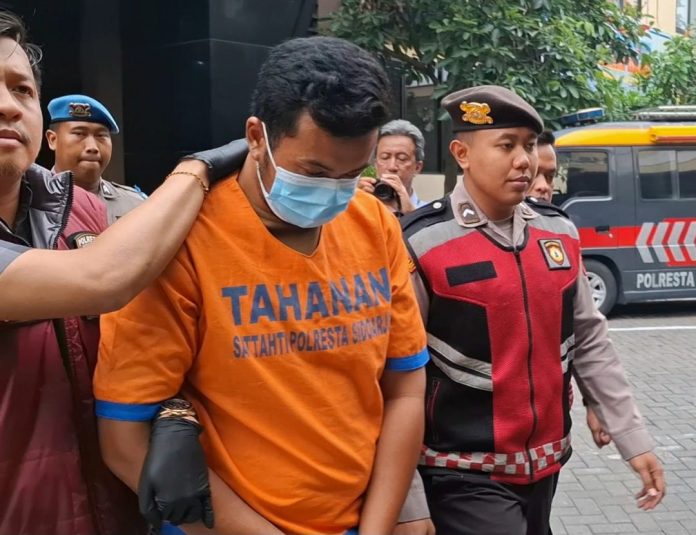 Kapolresta Sidoarjo Kombes Pol Christian Tobing mengatakan, tersangka berinisial F.L.B.N. (27 tahun), warga Kota Malang, ditangkap tak lama setelah kejadian.